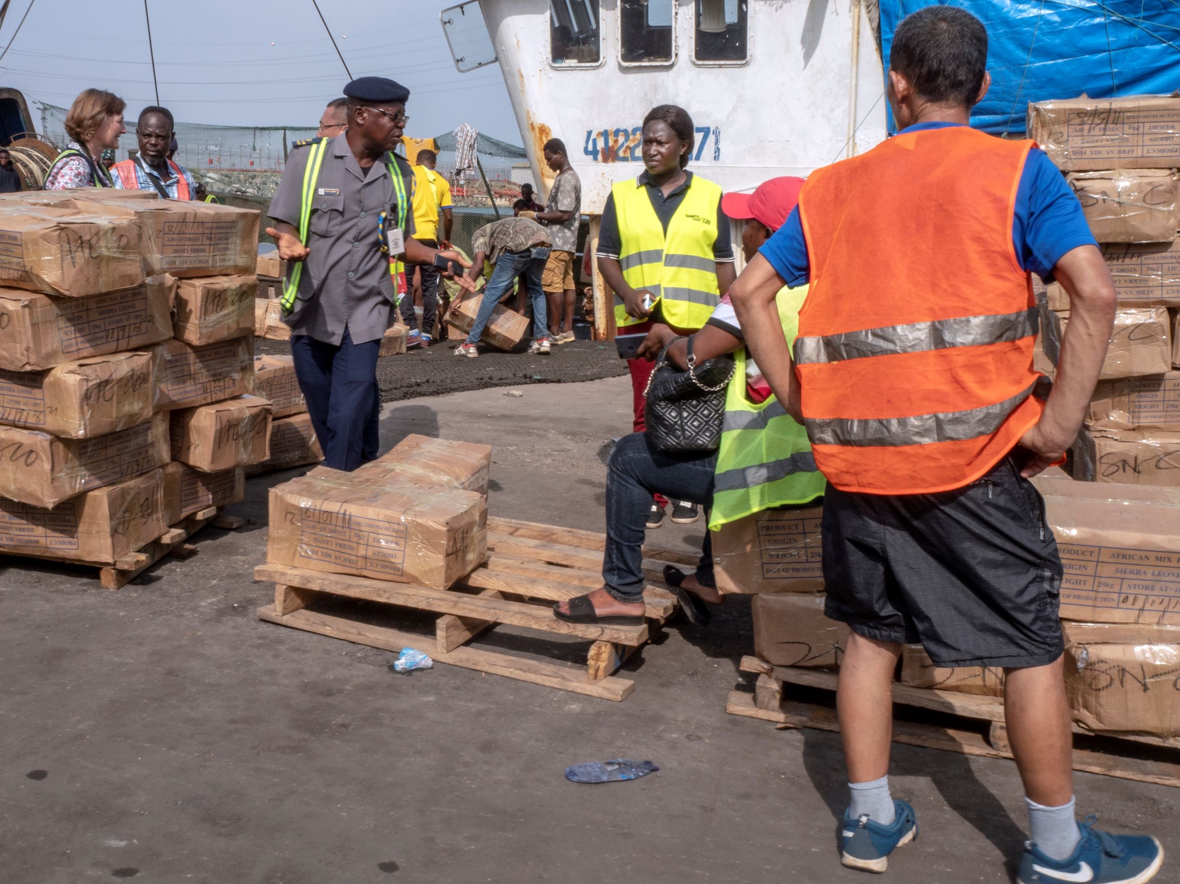 Doch die Entwicklung kann gestoppt werden. Jedes Schiff muss einmal einen Hafen anlaufen. Fisch kann zwar heimlich auch auf hoher See umgeladen werden, aber irgendwann kommt er an Land. Und Schiffe müssen betankt oder repariert werden. An dieser Stelle setzt das 2016 in Kraft getretene Port States Measures Agreement (PSMA) an – ein international verbindliches Abkommen von Hafenstaaten, um illegale Fischerei einzudämmen, welches die FAO betrieben hat. Auch Ghana ist PSMA beigetreten. Nachdem die Europäische Union (EU) 2013 dem Staat wegen allzu laschen Kontrollen eine gelbe Karte der Verwarnung zeigte, begannen die Behörden umzudenken. Auftritt Richard Yeboah von der Fisheries Commission in Accra und der lokalen Task Force: Seit 2018 hat sich diese zwischenbehördliche Einheit zum Ziel gesetzt, dem maritimen Raubbau ein Ende zu bereiten. „Am Anfang war es schwierig, alle beteiligten staatlichen Akteure an einen Tisch zu bringen“, sagt er. „Aber wir lernen nicht nur jeden Tag hinzu, sondern wir erzielen auch große Fortschritte.“
