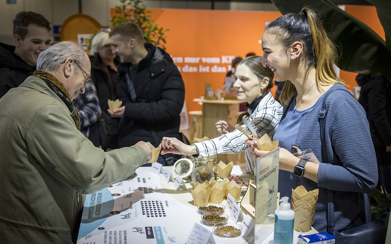 Weighty questions are being negotiated on the square metres of stand 107. How can the challenges of the global food crisis, of which little is felt at the fair, be mastered? How can we live without hunger? Passers-by to the left and right of the BMZ area hardly expect this interjection; most are looking for pleasure. But quite a few stop. "I recommend the barbecue and Thai mix first," says BMZ staff member Anisa El-Battahi when a couple stops in front of the insect table. The crickets are deep-fried and seasoned, a protein-rich, sustainable superfood of the future. "Well, why not," he says. And she: "It's not part of our culture, after all." Both are dressed in Bavarian traditional costume, coming from the Bavarian stand. Heidi Leitmanstetter, tax consultant, and her husband Rudolf, mayor of Vogtareuth, take a bite. "Hm. Yes." And, "It's not bad." No, they wouldn't buy it, but: "Our children are vegetarians, the young people look much more consciously at food. They have completely different senses. Maybe this is something for them."