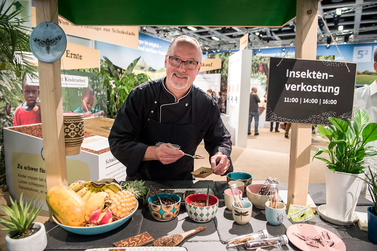At the BEAF booth in the hall of BMZ, we presented key facts and figures related to the environmental sustainability and nutritional value of insects’ consumption in the form of a dining table that the fair visitors could sit at and try edible insects while listening to a briefing related to our research activities and future expectations. In addition, we hosted several edible insects living cooking shows with the celebrity chef Frank Ochmann. During the live cooking shows, visitors not only learnt about the way insects are prepared and cooked but they also had the chance to engage in a discussion and listen to some feedback from both a researcher and a chef’s perspectives. We have noticed from our interactions during the IGW 2018 the huge public concern in Germany related to finding alternative environmentally sustainable and secured agricultural systems. However, the consumption of edible insects in the developed world might be limited by the yuck factor related to cultural perceptions surrounding insects. A challenge that we might still need time to overcome in order to reach our goal of a zero hunger world.