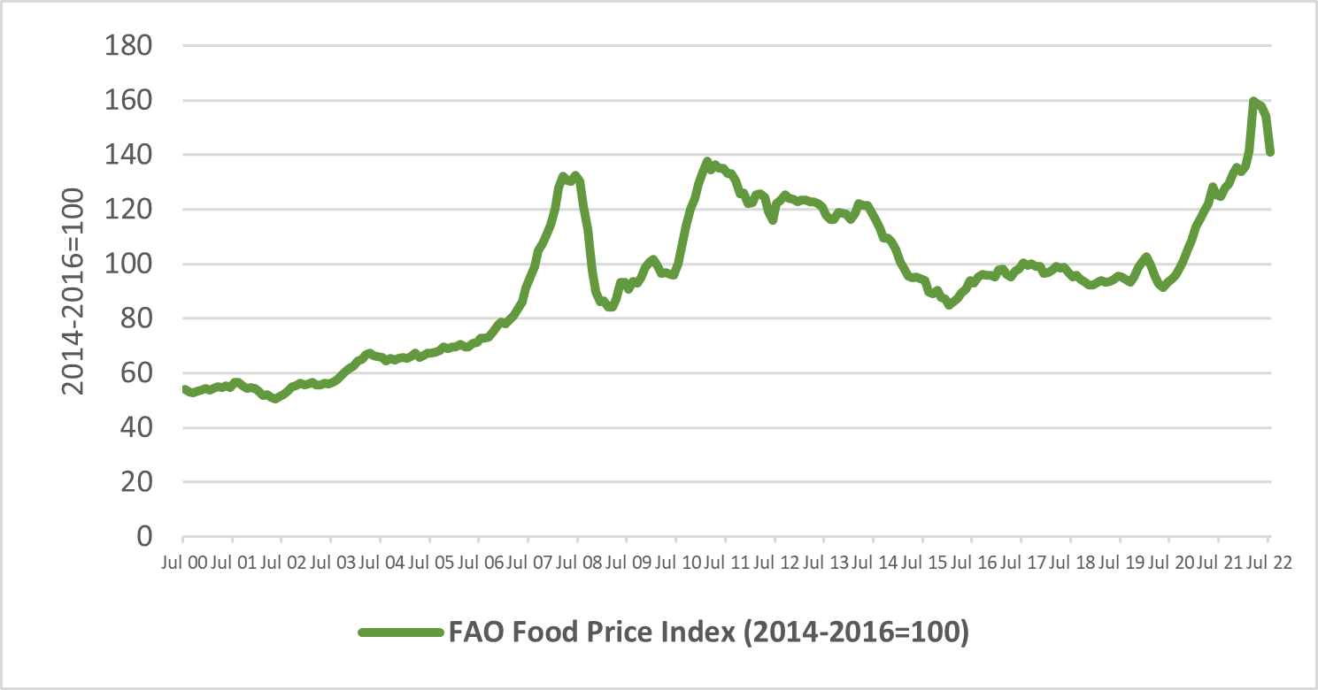 The climate crisis is revealing just how destructive its effects can be even at the current rate of warming at 1.2°C with drought and heat stress afflicting crops and livestock in the major breadbaskets of the world, especially the US, China, Europe and India. The four Cs, Covid-19, Conflict and Climate change, have sent the Cost of living to an unprecedented high – and are conspiring to put the world at a cusp of the most catastrophic food crisis in 50 years. While international food prices are falling back to pre-war levels, they are still substantially higher than a year ago.
