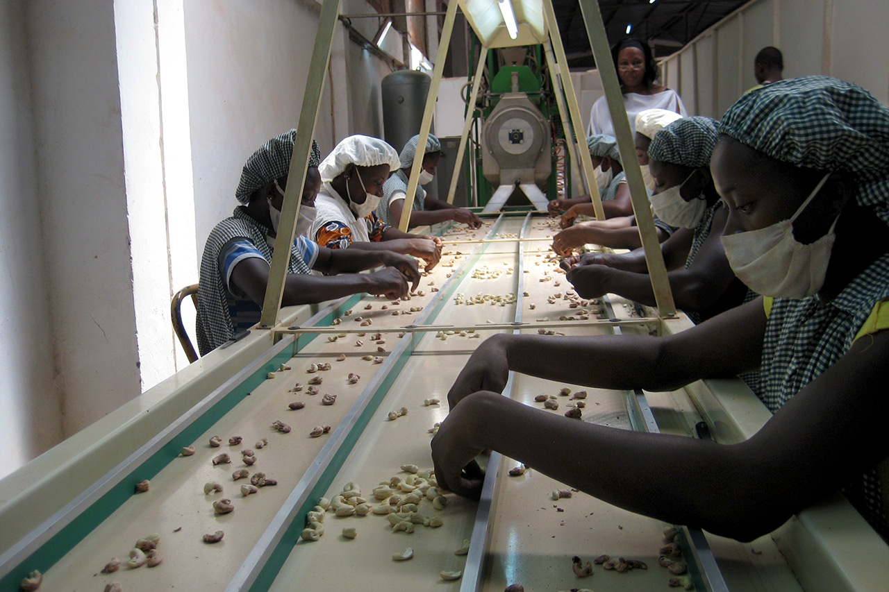 This is partly due to lack of infrastructure, lack of investment and fluctuating prices. Governments in production countries are trying to create political and economic incentives to strengthen local processing because this is an occupation that primarily employs women and represents much-needed income for many families. There is huge potential for production countries to increase local processing. According to the competitive cashew initiative ‘ComCashew’, a regional GIZ project that has been promoting the cashew value chain in Africa since 2009, up to one million jobs could be created each year if all African cashew nuts (around 1.5 million tonnes) were processed into cashew kernels in Africa.
