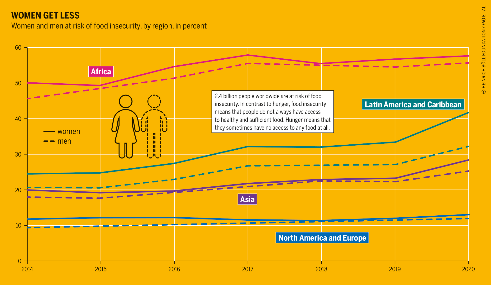 In 2021 FAO emphasized that hunger is essentially caused by poverty and inequality. Fighting hunger means fighting inequality too. The land rights of vulnerable groups must be recognized and secured. This protects against chronic poverty and enables investments in sustainable land use. Long-term investment in climate-adaptation measures also become profitable for smallholders if their land tenure is secure. It is especially important that women have secure access to land. Combating inequality is also necessary within the family: equality generally has a positive impact on the food security of the household and the well-being of children.