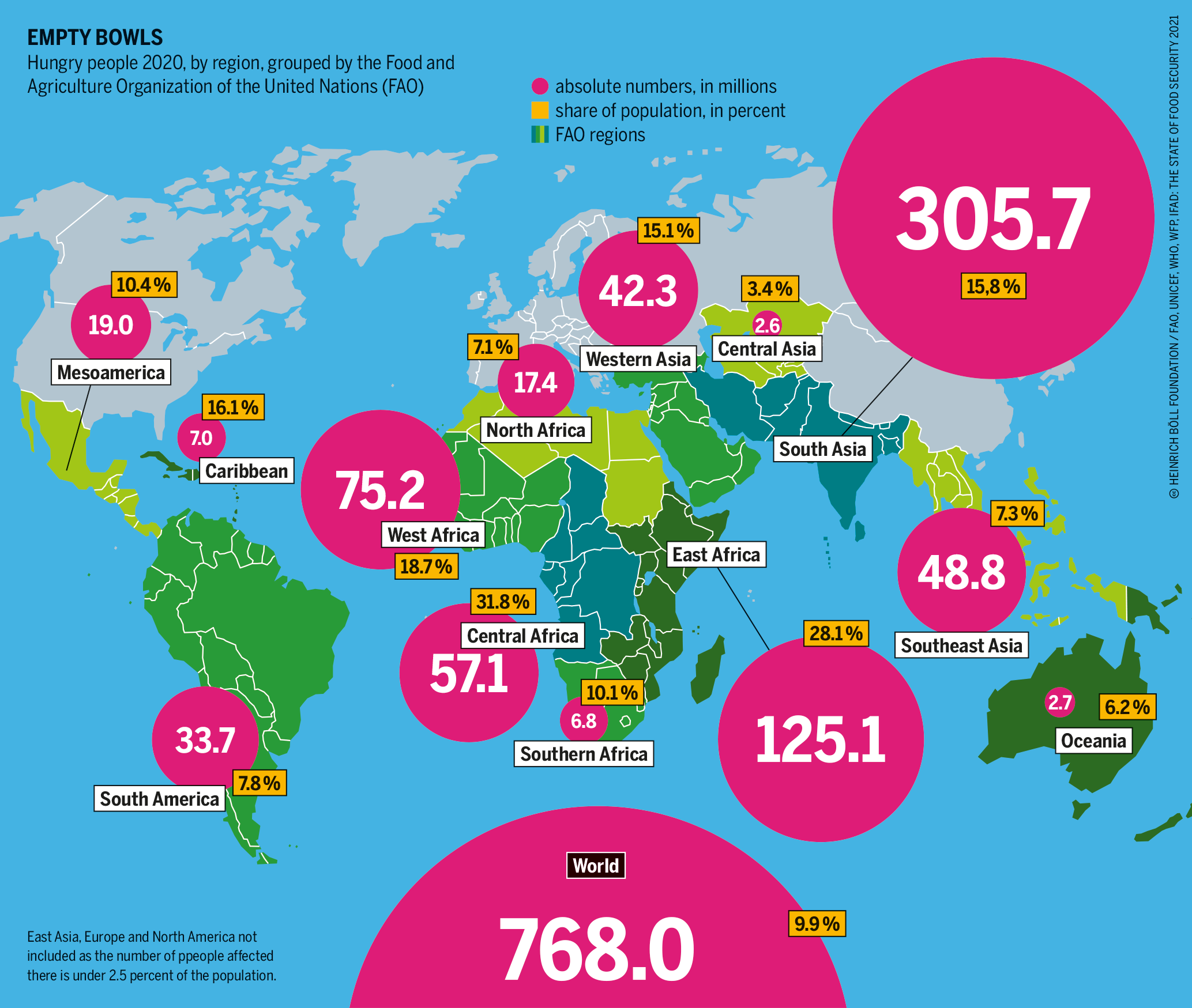 In 2020, 768 million people suffered from hunger and undernourishment. That is almost 10 percent of the global population. The Food and Agriculture Organization of the United Nations expects these numbers to rise further as a result of the economic crisis triggered by covid-19, extreme weather events, and conflicts.