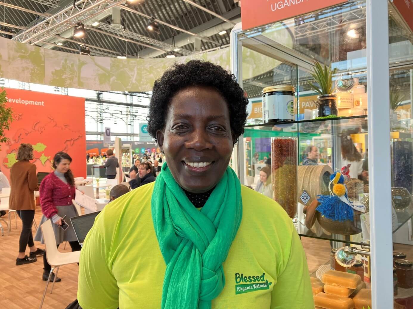 Auch im Jahr 2023 präsentierte "Blessed Organic Release" dort seine Sheabutter für Haut, Sheaöl und Sheahonig. Und das Wort "gesegnet" im Namen hat es in sich: "Als Christin bin ich überzeugt: Bio ist eine gesegnete Methode, weil sie die Gesundheit des Bodens, der Insekten, der Tiere und der Menschen schützt. Es ist nicht nur eine Frage des Glaubens - 'gesegnet' ist eine positive Aussage, auch wenn man nicht glaubt. Unsere Organisation ist weder konfessionell noch politisch ausgerichtet. Wir nehmen Menschen aller Glaubensrichtungen auf. Wir arbeiten mit armen Menschen. Armut ist Armut."